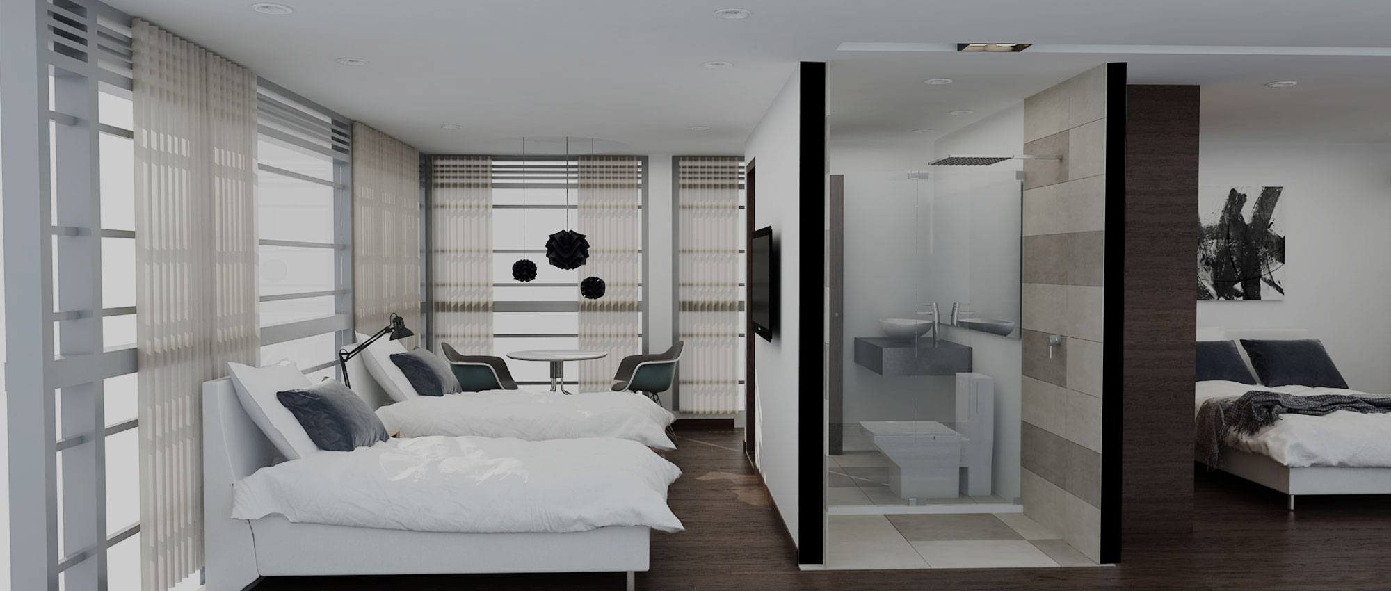 escritorio, cortinas para el control solar y lo más importante era lograr el objetivo de 3 habitaciones